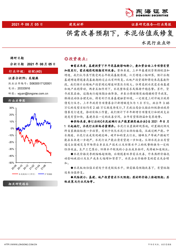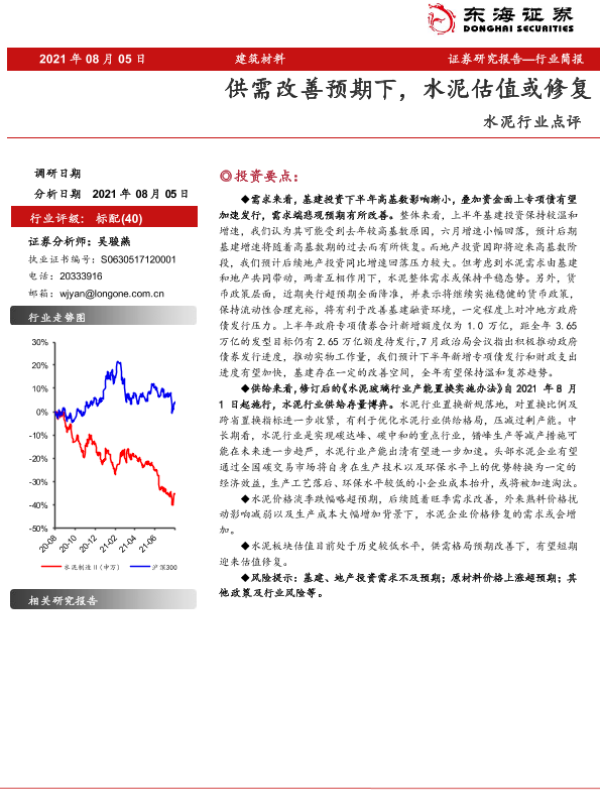 【东海证券】【20210805】水泥行业点评:供需改善预期下,水泥估值或修复-5页