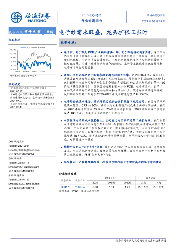 【海通证券】【20210809】电子纱需求旺盛,龙头扩张正当时-19页