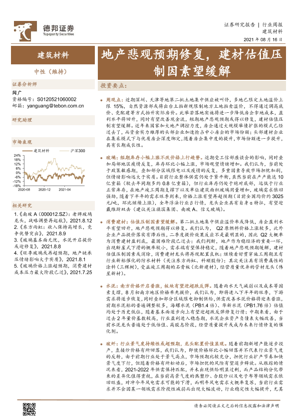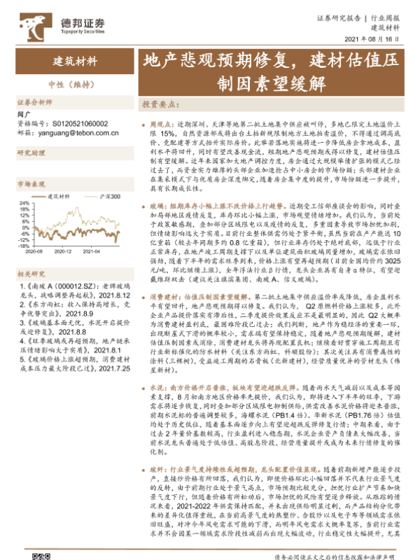 【德邦证券】【20210816】建筑材料行业周报:地产悲观预期修复,建材估值压制因素望缓解-19页