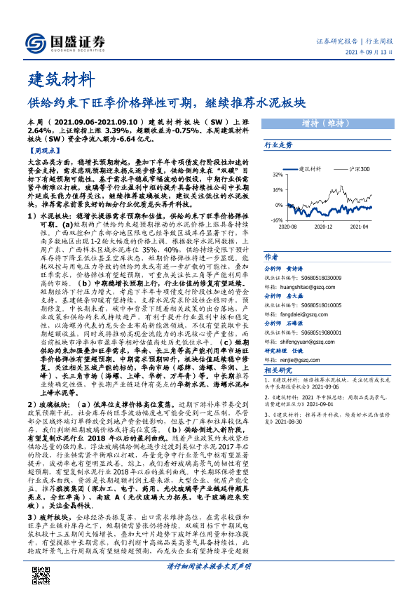 【国盛证券】【20210913】建筑材料行业周报:供给约束下旺季价格弹性可期,继续推荐水泥板块-13页