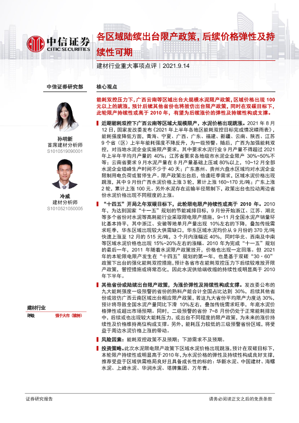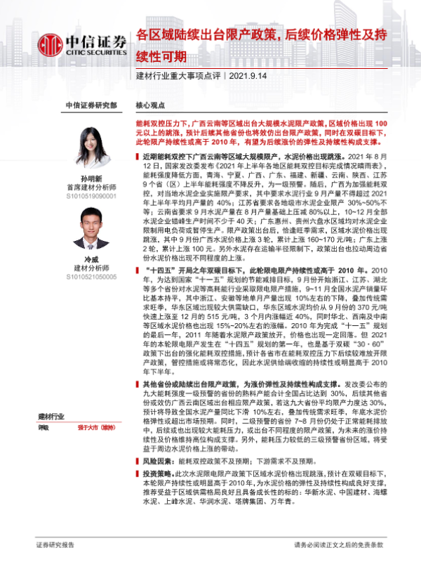 【中信证券】【20210914】建材行业重大事项点评:各区域陆续出台限产政策,后续价格弹性及持续性可期-6页