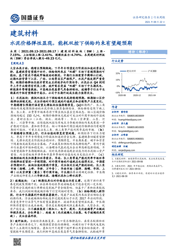 【国盛证券】【20210922】建筑材料行业周报:水泥价格弹性显现,能耗双控下供给约束有望超预期-13页