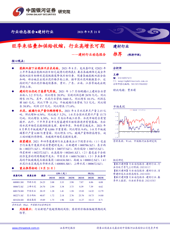 【银河证券】【20210921】建材行业动态报告:旺季来临叠加供给收缩,行业高增长可期-14页