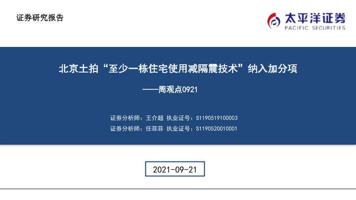 【太平洋证券】【20210921】北京土拍“至少一栋住宅使用减隔震技术”纳入加分项-41页