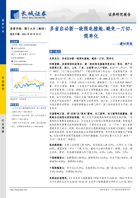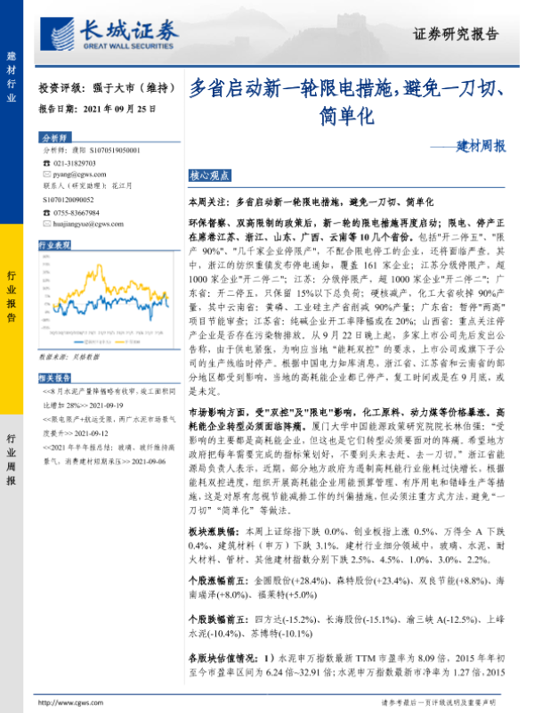 【长城证券】【20210925】多省启动新一轮限电措施,避免一刀切、简单化-20页