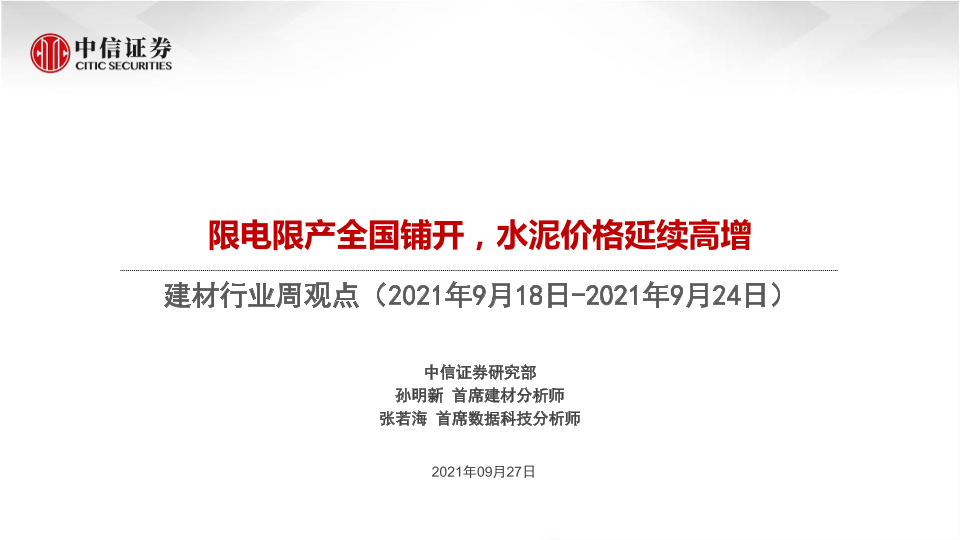 【中信证券】【20210927】建材行业周观点:限电限产全国铺开,水泥价格延续高增-51页