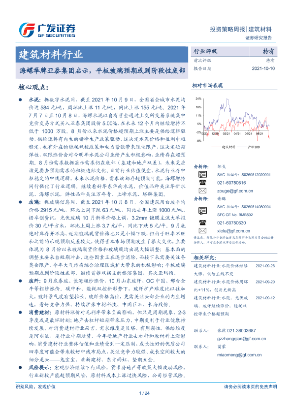 【广发证券】【20211010】海螺举牌亚泰集团启示,平板玻璃预期或到阶段性底部-24页