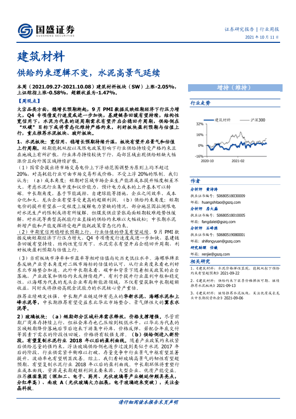 【国盛证券】【20211011】建筑材料行业周报:供给约束逻辑不变,水泥高景气延续-12页