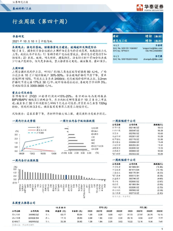 【华泰证券】【20211010】基础材料 工业行业周报(第四十周)-14页