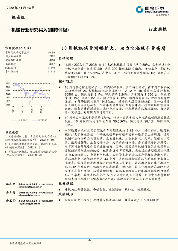 【国金证券】【20221113】机械行业研究:10月挖机销量增幅扩大,动力电池装车量高增-19页