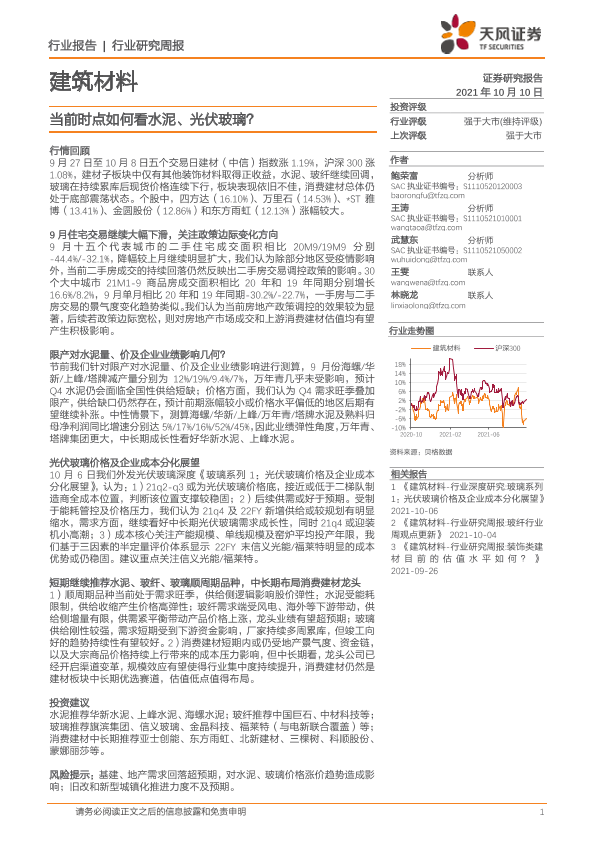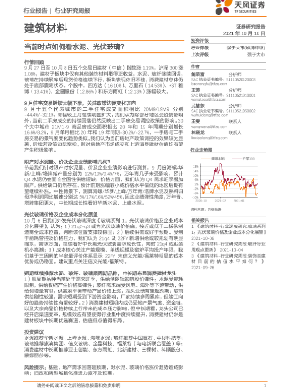 【天风证券】【20211010】当前时点如何看水泥、光伏玻璃-13页