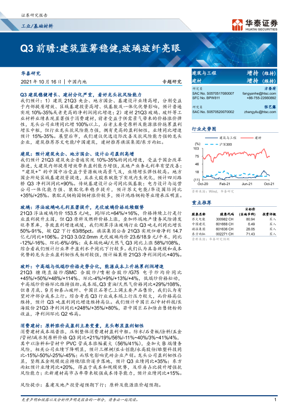 【华泰证券】【20211016】基础材料Q3前瞻:建筑蓝筹稳健,玻璃玻纤亮眼-13页