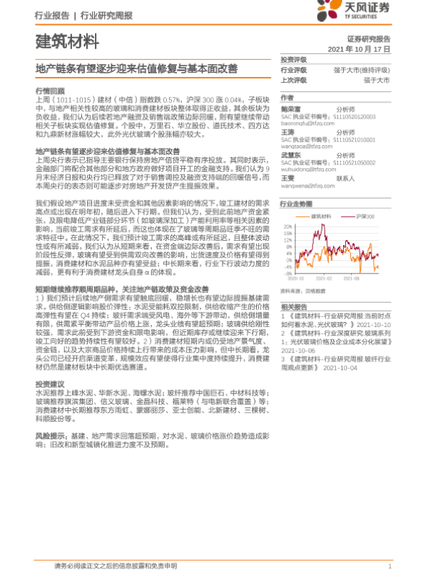 【天风证券】【20211017】建筑材料行业研究周报:地产链条有望逐步迎来估值修复与基本面改善-6页