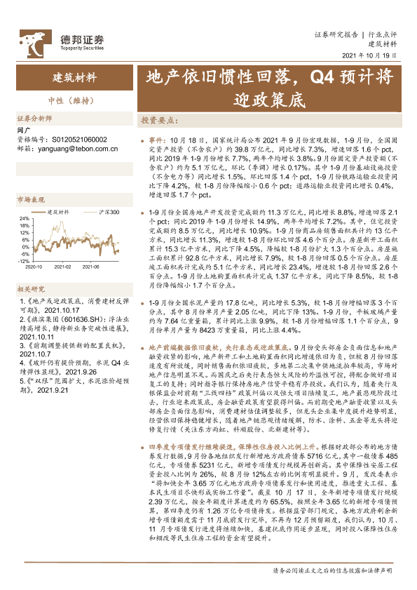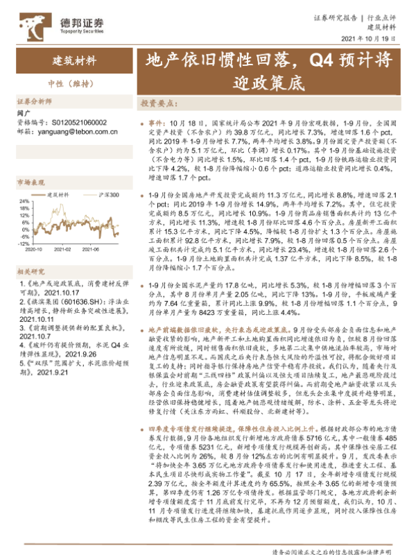 【德邦证券】【20211019】建筑材料行业点评:地产依旧惯性回落,Q4预计将迎政策底-3页