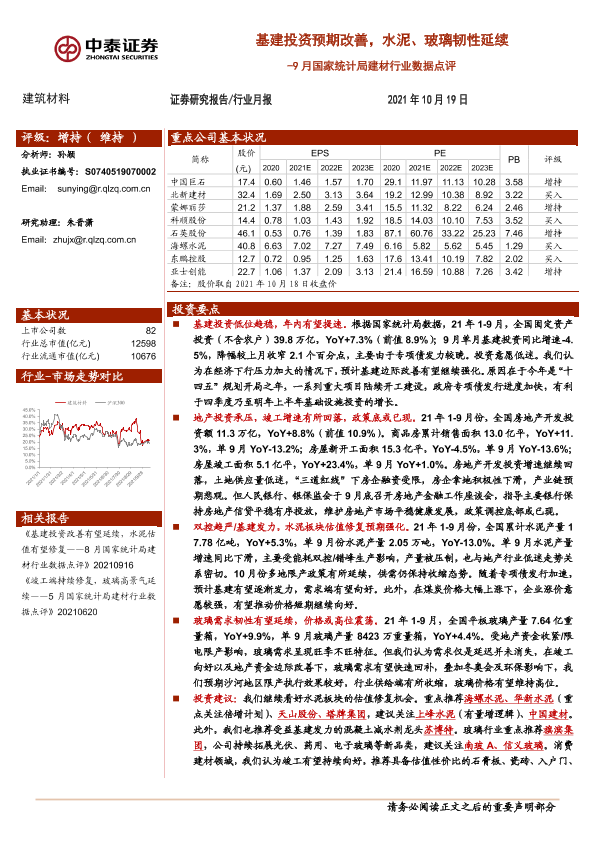 【中泰证券】【20211019】9月国家统计局建材行业数据点评-6页