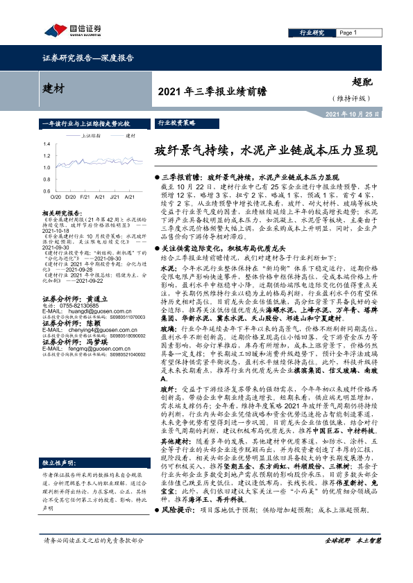 【国信证券】【20211025】建材2021年三季报业绩前瞻:玻纤景气持续,水泥产业链成本压力显现-17页