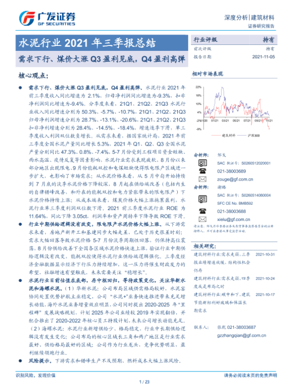 【广发证券】【20211105】水泥行业2021年三季报总结-23页