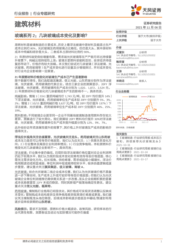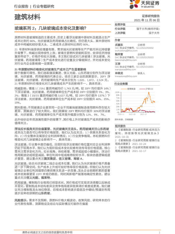 【天风证券】【20211106】建筑材行业料玻璃系列2:几块玻璃成本变化及影响?-13页