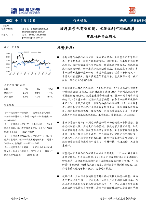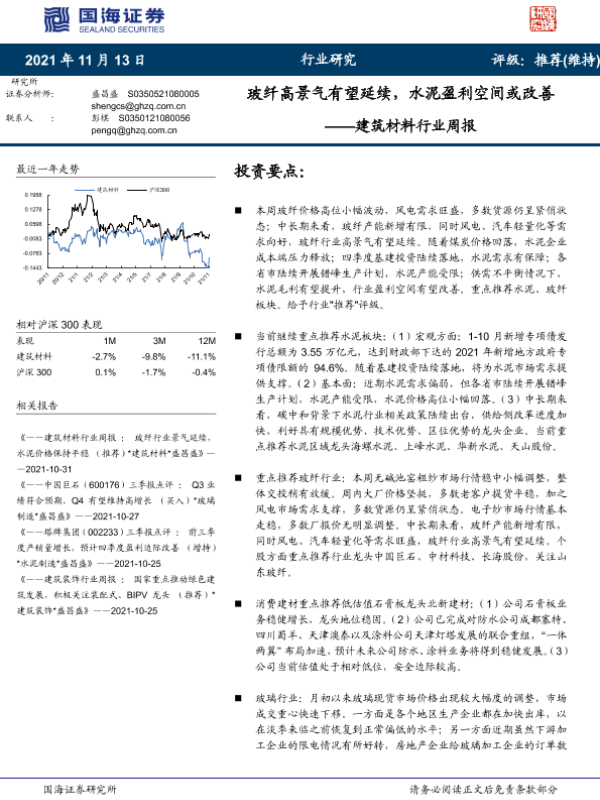 【国海证券】【20211113】玻纤高景气有望延续,水泥盈利空间或改善-20页