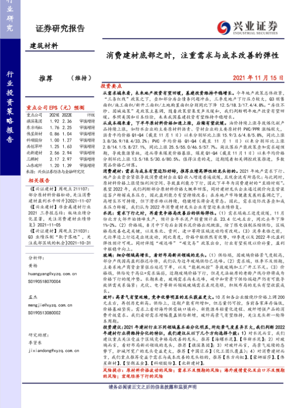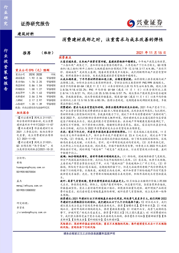【兴业证券】【20211115】消费建材底部之时,注重需求与成本改善的弹性-41页