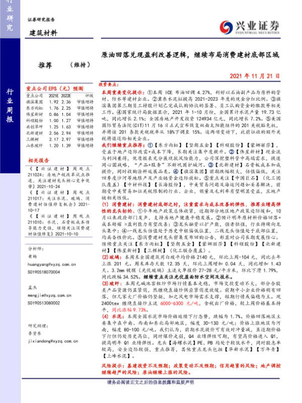 【兴业证券】【20211121】原油回落兑现盈利改善逻辑,继续布局消费建材底部区域-21页