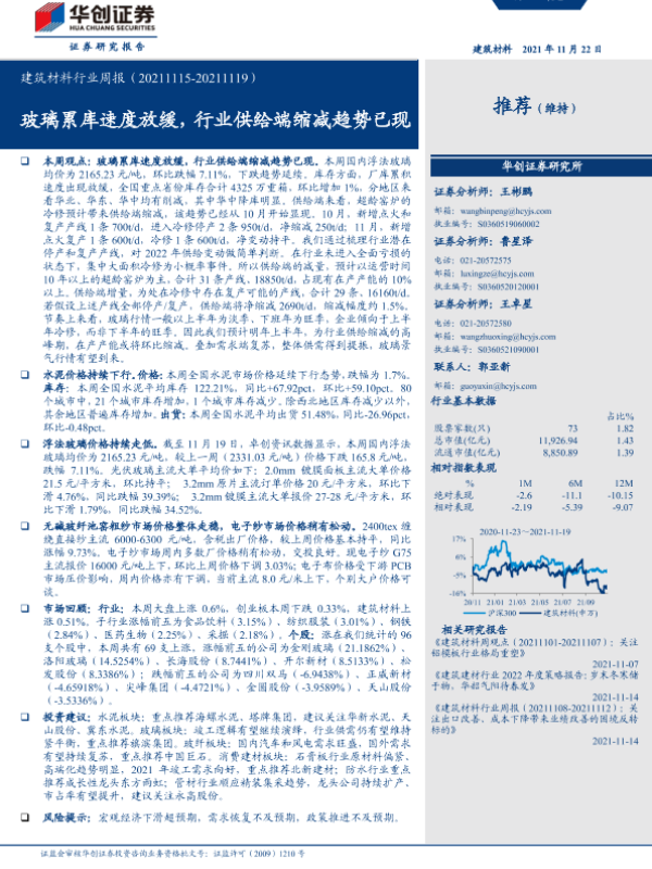 【华创证券】【20211122】建筑材料行业周报:玻璃累库速度放缓,行业供给端缩减趋势已现-21页