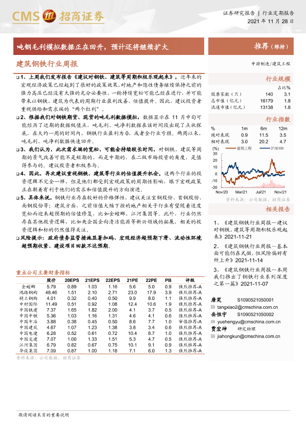 【海通证券】【20211128】建筑钢铁行业周报:吨钢毛利模拟数据正在回升,预计还将继续扩大-2页