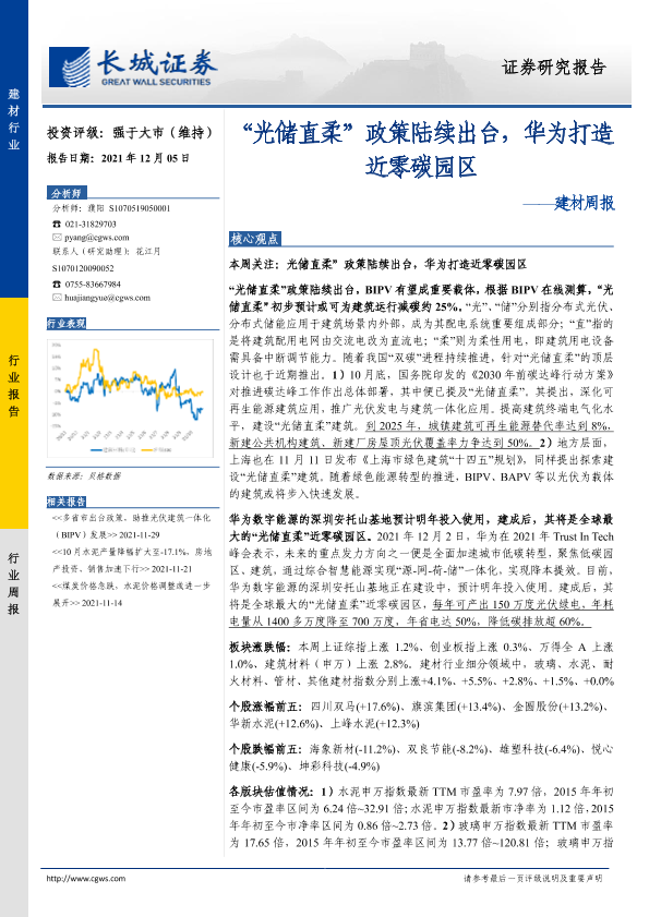 【长城证券】【20211205】建材周报:“光储直柔”政策陆续出台,华为打造近零碳园区-20页
