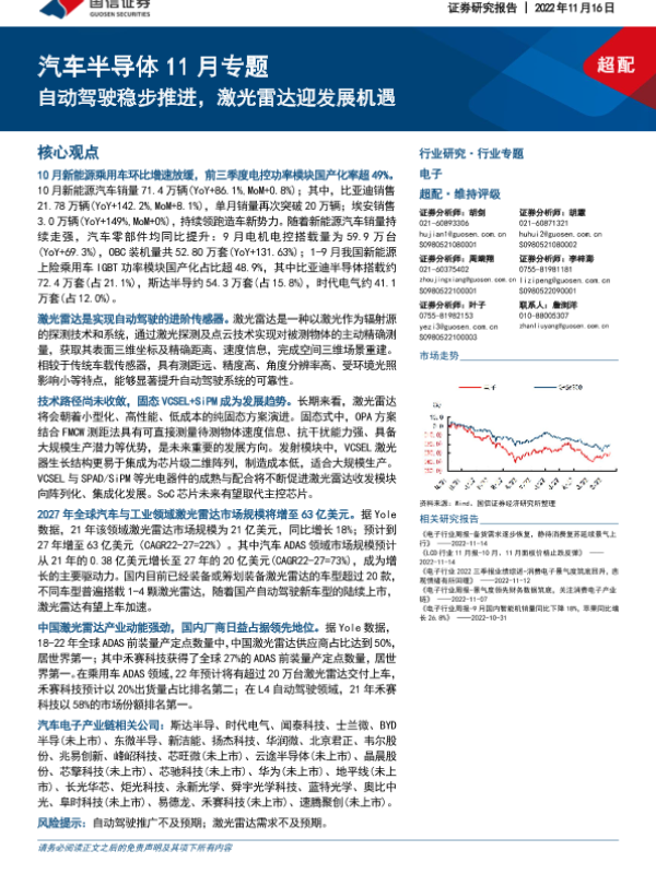 【国信证券】【20221116】汽车半导体11月专题:自动驾驶稳步推进,激光雷达迎发展机遇-24页