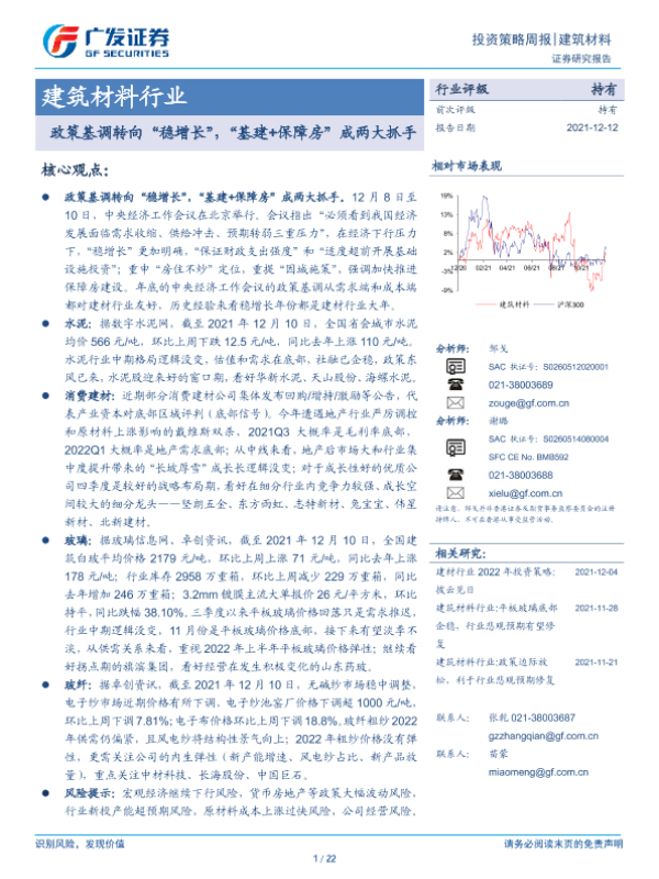 【广发证券】【20211212】建筑材料行业:政策基调转向“稳增长”,“基建+保障房”成两大抓手-22页