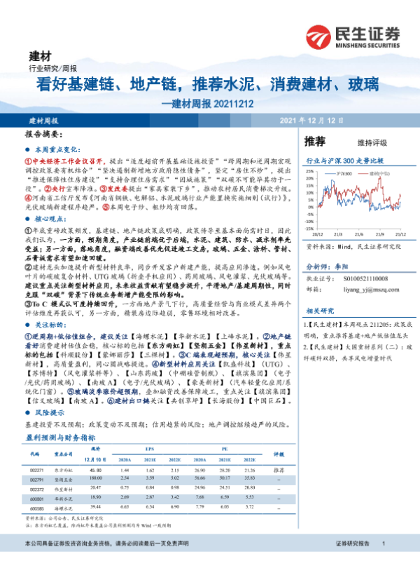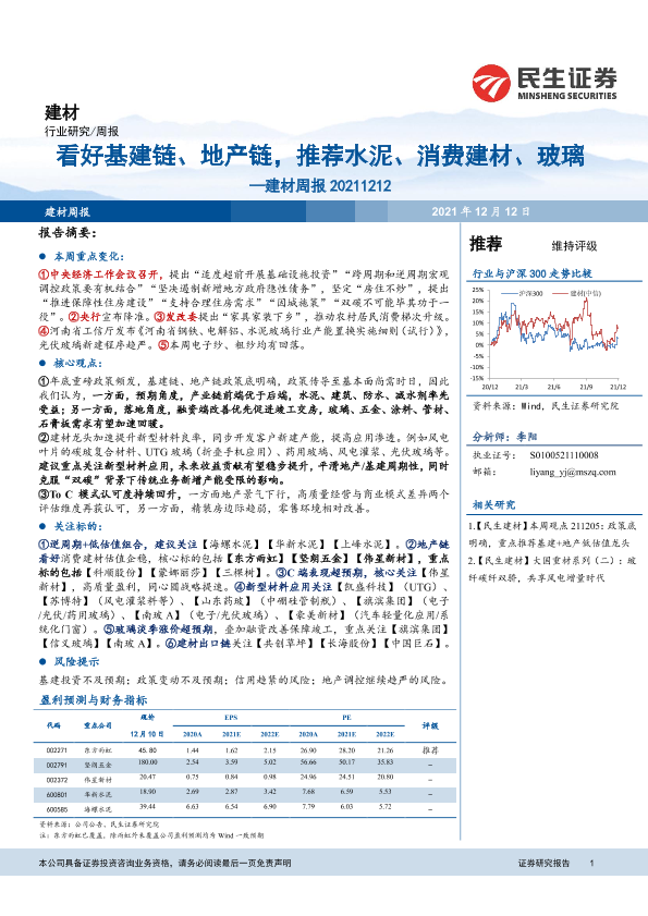 【民生证券】【20211212】建材周报:看好基建链、地产链,推荐水泥、消费建材、玻璃-21页
