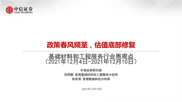 【中信证券】【20211213】基础材料和工程服务行业周观点:政策春风频至,估值底部修复-51页