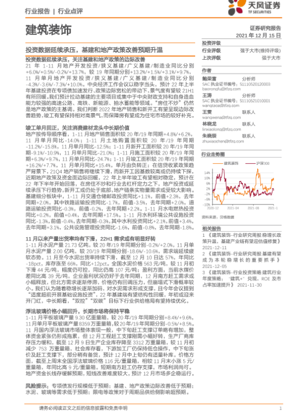 【天风证券】【20211215】建筑装饰:投资数据延续承压,基建和地产政策改善预期升温-4页