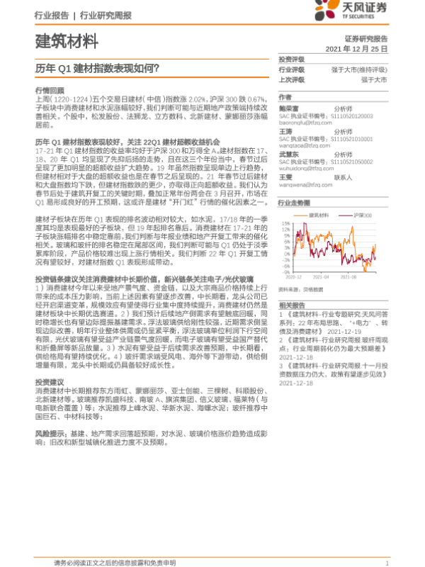 【天风证券】【20211225】建筑材料行业研究周报:历年Q1建材指数表现如何?-7页