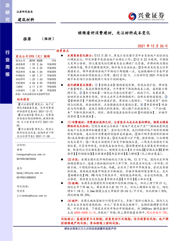 【兴业证券】【20211226】继续看好消费建材,关注材料成本变化-21页