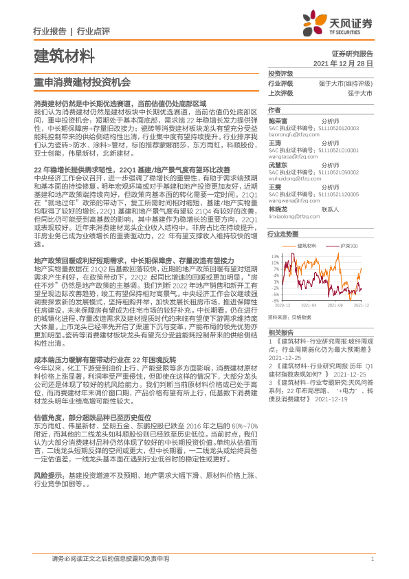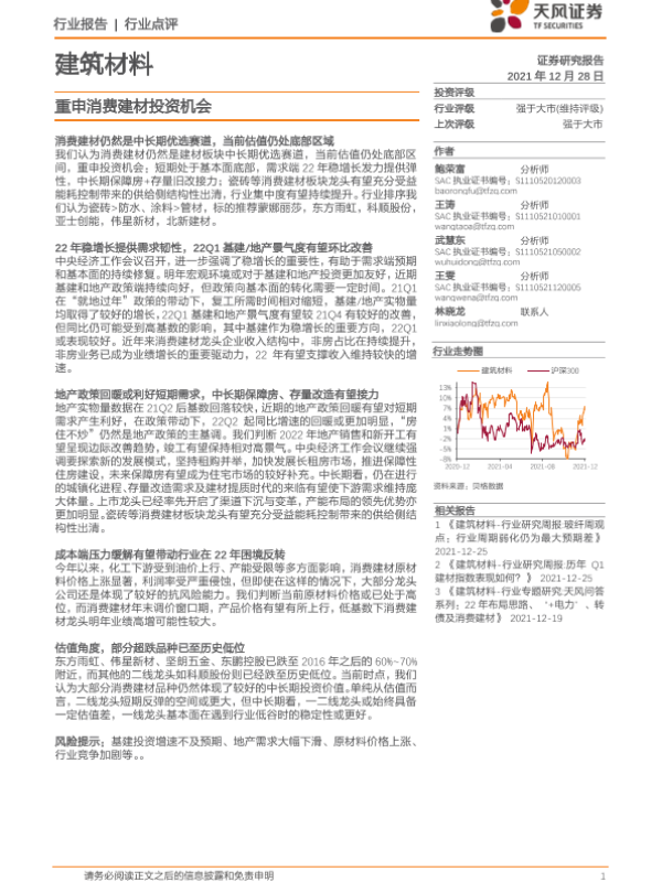 【天风证券】【20211228】建筑材料行业点评:重申消费建材投资机会-3页