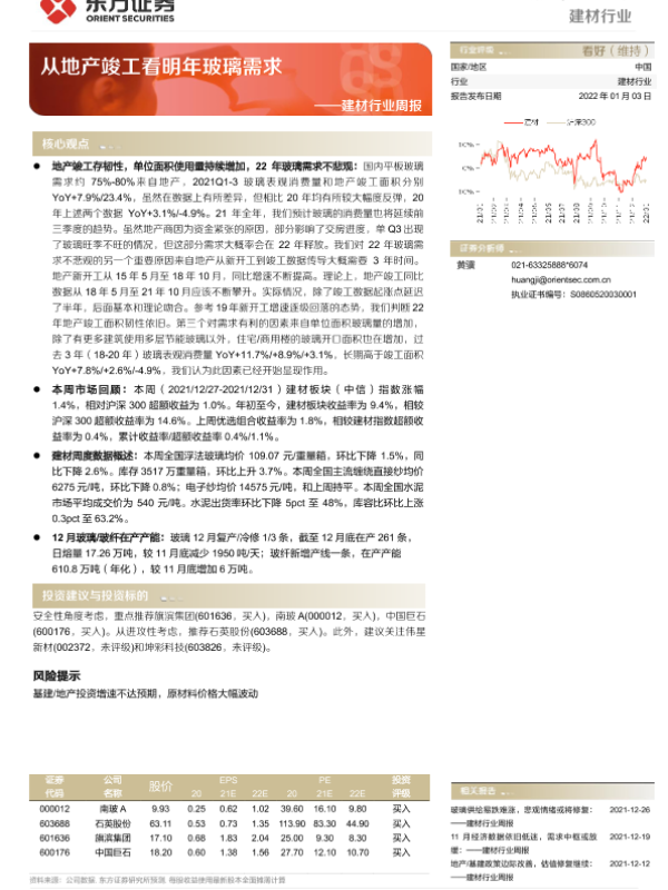 【东方证券】【20220103】从地产竣工看明年玻璃需求-23页