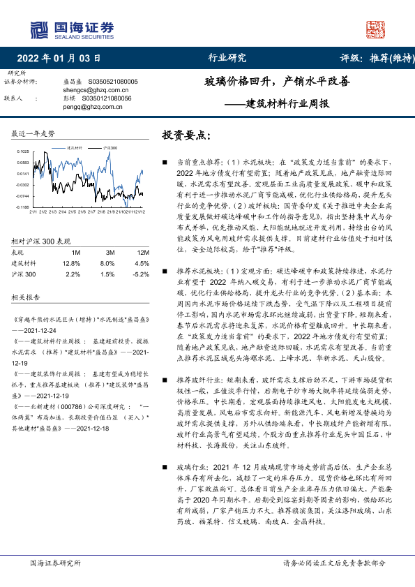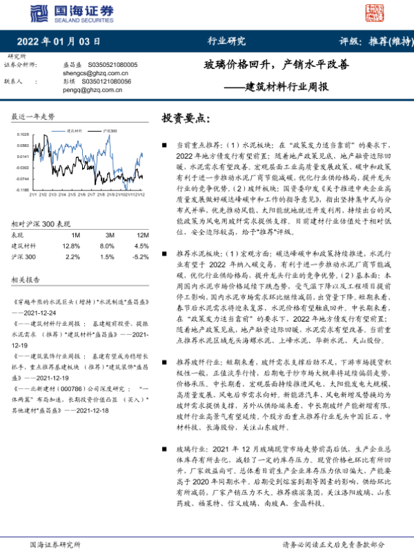 【国海证券】【20220103】建筑材料行业周报:玻璃价格回升,产销水平改善-19页