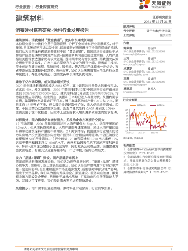 【天风证券】【20211231】消费建材系列研究:涂料行业发展报告-30页