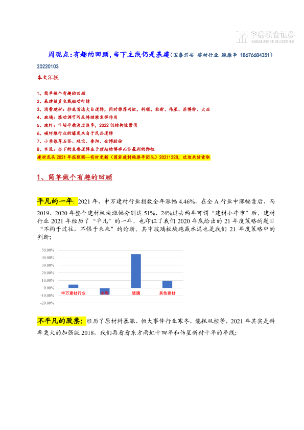 【国泰君安证券】【20220103】建材周观点:有趣的回顾,当下主线仍是基建-20页
