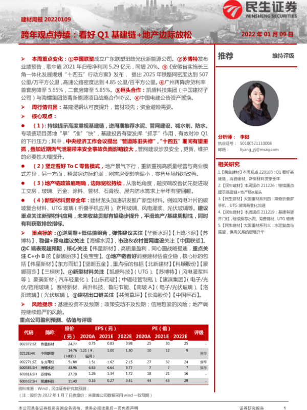 【民生证券】【20220109】建材周报:跨年观点持续:看好Q1基建链+地产边际放松-17页