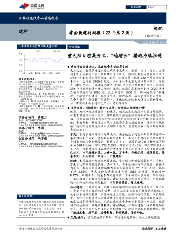 【国信证券】【20220110】非金属建材周报:重大项目密集开工,“稳增长”措施持续推进-15页