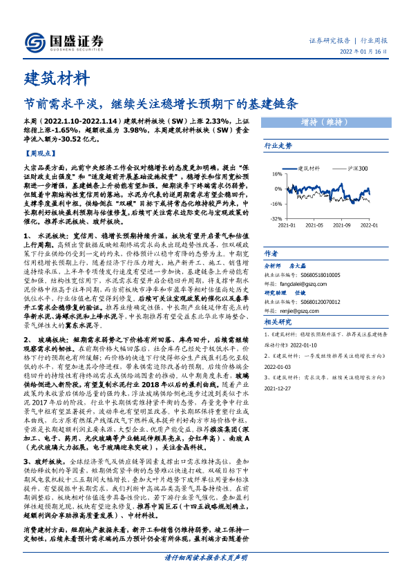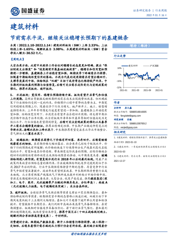 【国盛证券】【20220116】建筑材料行业周报:节前需求平淡,继续关注稳增长预期下的基建链条-12页