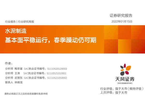 【天风证券】【20220115】水泥制造行业研究周报:基本面平稳运行,春季躁动仍可期-22页