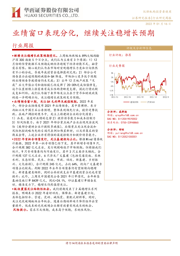 【华西证券】【20220116】建筑建材行业周报:业绩窗口表现分化,继续关注稳增长预期-11页