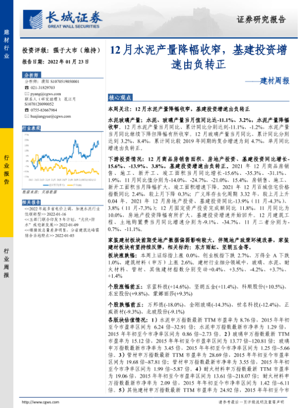 【长城证券】【20220123】12月水泥产量降幅收窄,基建投资增速由负转正-24页