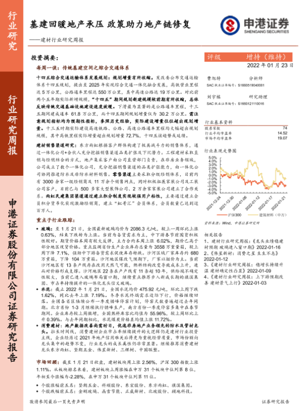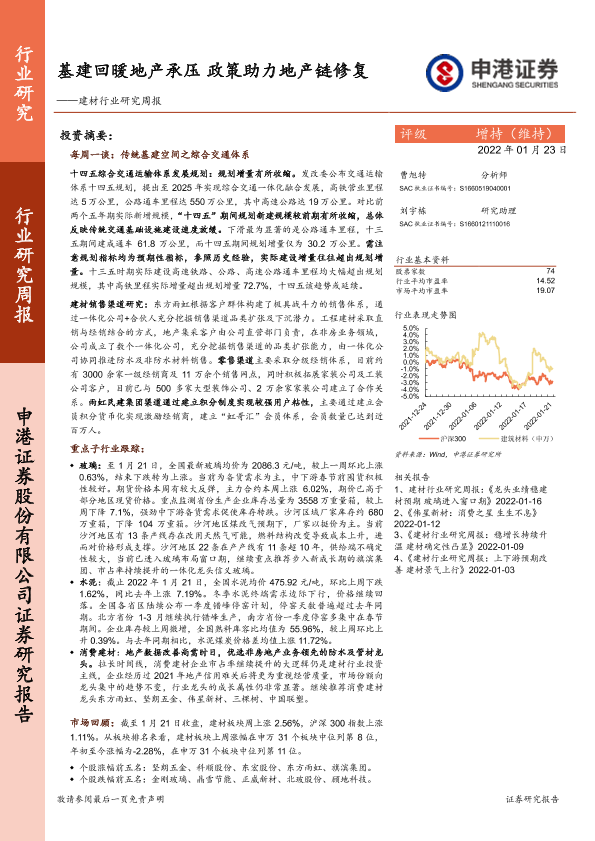 【申港证券】【20220123】建材行业研究周报:基建回暖地产承压政策助力地产链修复-13页