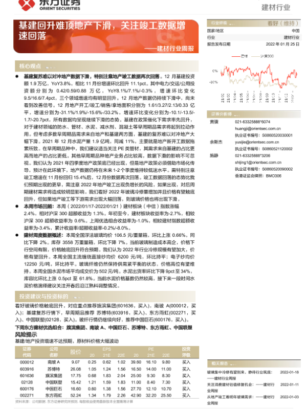 【东方证券】【20220125】建材行业周报:基建回升难顶地产下滑,关注竣工数据增速回落-23页