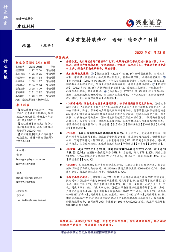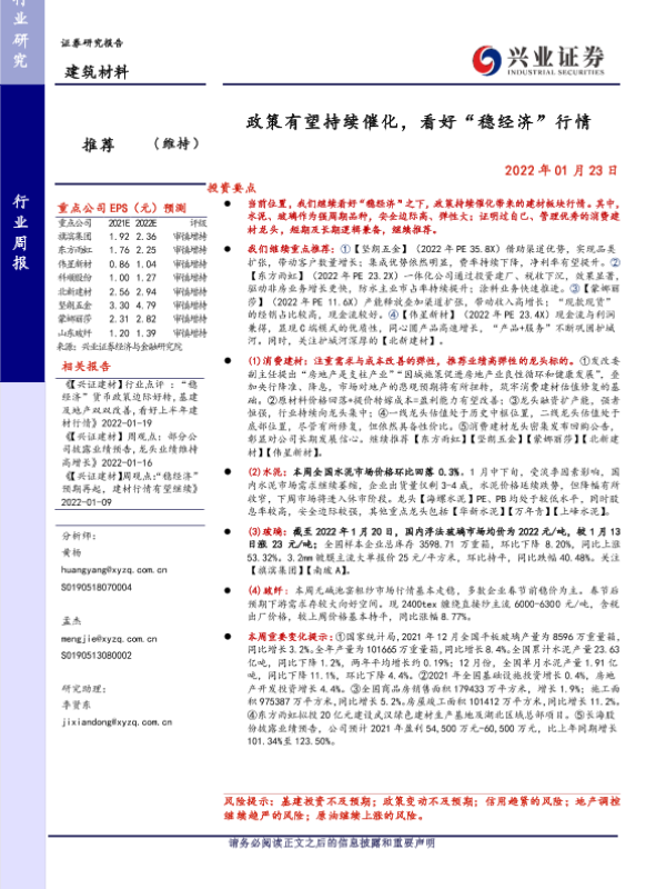 【兴业证券】【20220123】建筑材料行业周报:政策有望持续催化,看好“稳经济”行情-21页