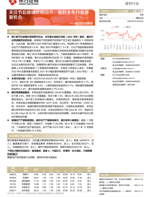 【东方证券】【20220208】关注节后玻璃价格回升,看好全年行业修复机会-23页